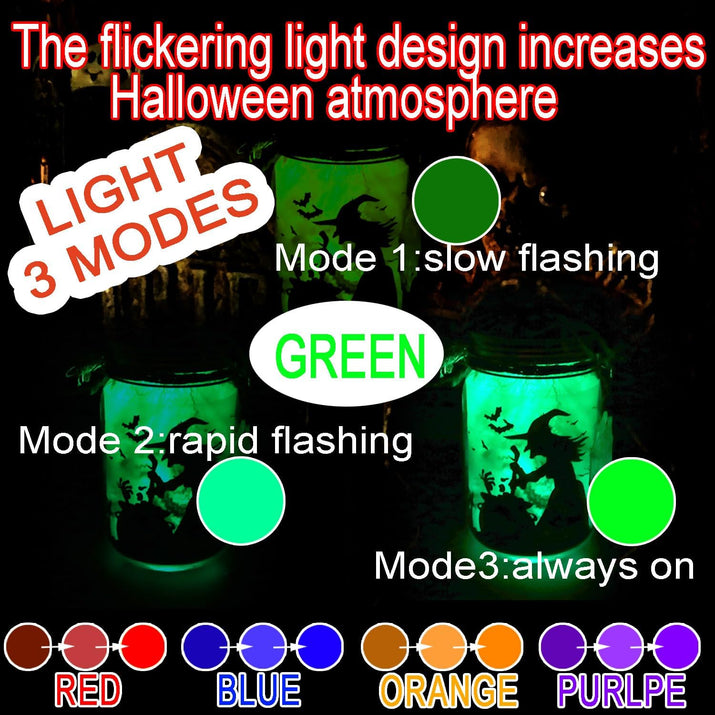 Answer 2: The kit includes four durable mason jars, a set of eight colorful LED string lights, and a variety of themed silhouettes (such as pumpkins, ghosts, and witches) to help you create four unique lanterns. All necessary supplies are packaged together for your convenience.